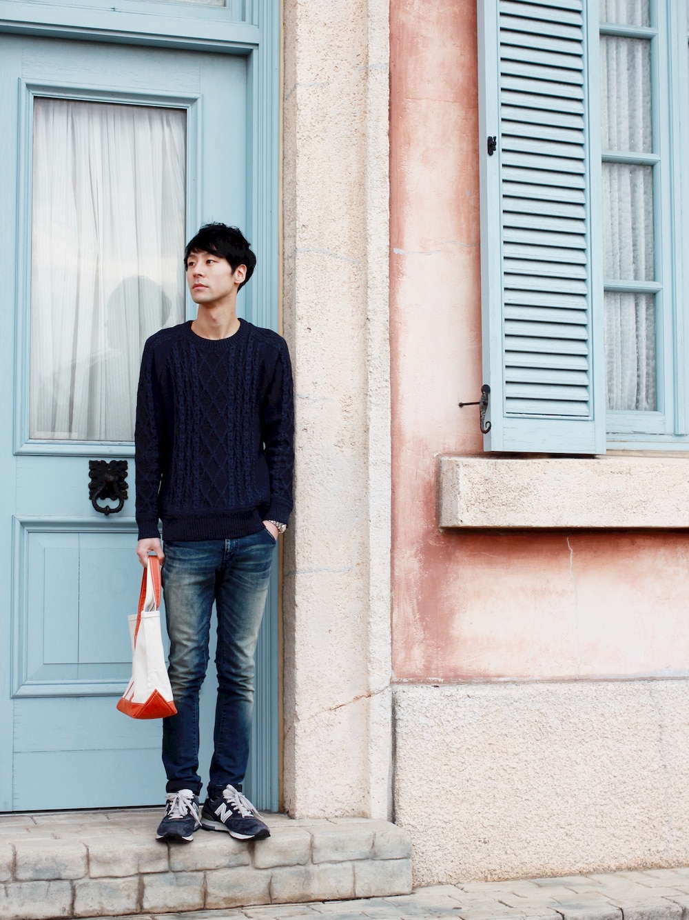 こういちのニット/セーター「ペーパーヤーンアランセーター」を使ったコーディネート