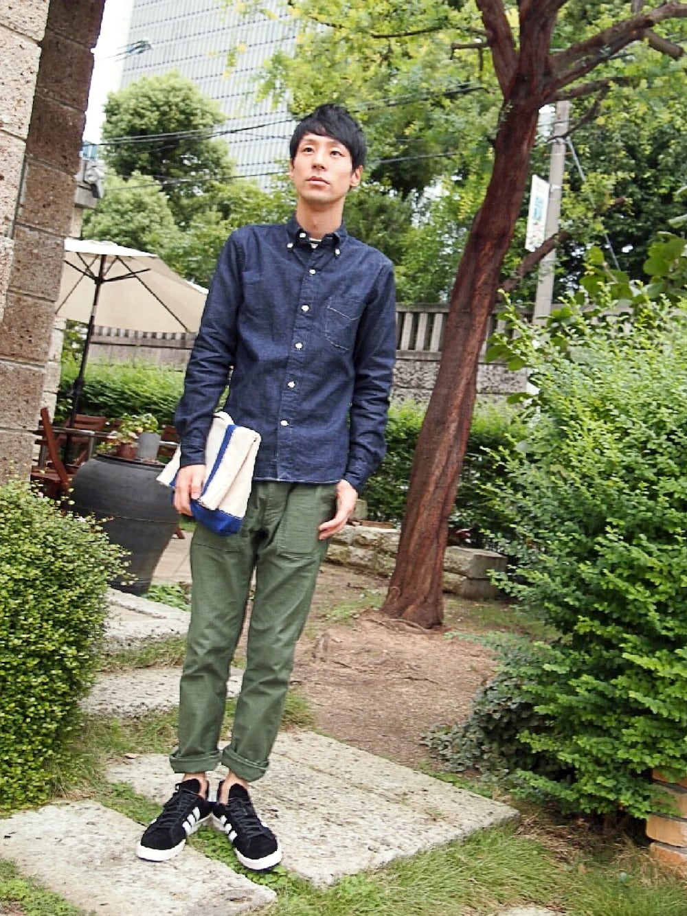 こういちのカーゴパンツ「【orSlow(オアスロウ)】SLIM FIT FATIGUE/ GREEN」を使ったコーディネート