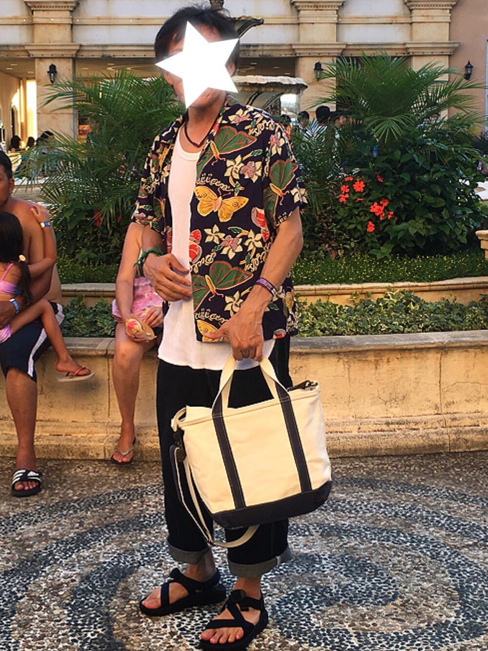 息子とプールのあるテーマパークに行ってきた。 リゾートを意識したアロハシャツコーデ。 街を歩けばチンピラに思われるかもしれないけど、こういう所ならアリかな、と思っている。 上下とも色が暗いので、白タンクトップを挟んだレイヤードと、トートバッグて明るい色を追加。 息子に写真撮ってもらったら、背景が悪く、コーデが見にくい😭