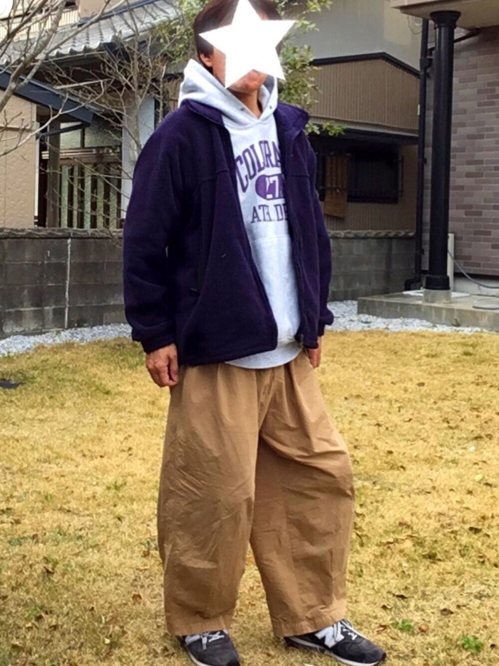 シルエットはいつも通り、ダボダボ系。 タンスの奥から90年代のフリースが出てきたので、毛玉を取りまくり着てみた。 今では絶対買わないパープル系。 パーカーのロゴの色を合わせてコーデしてみました。