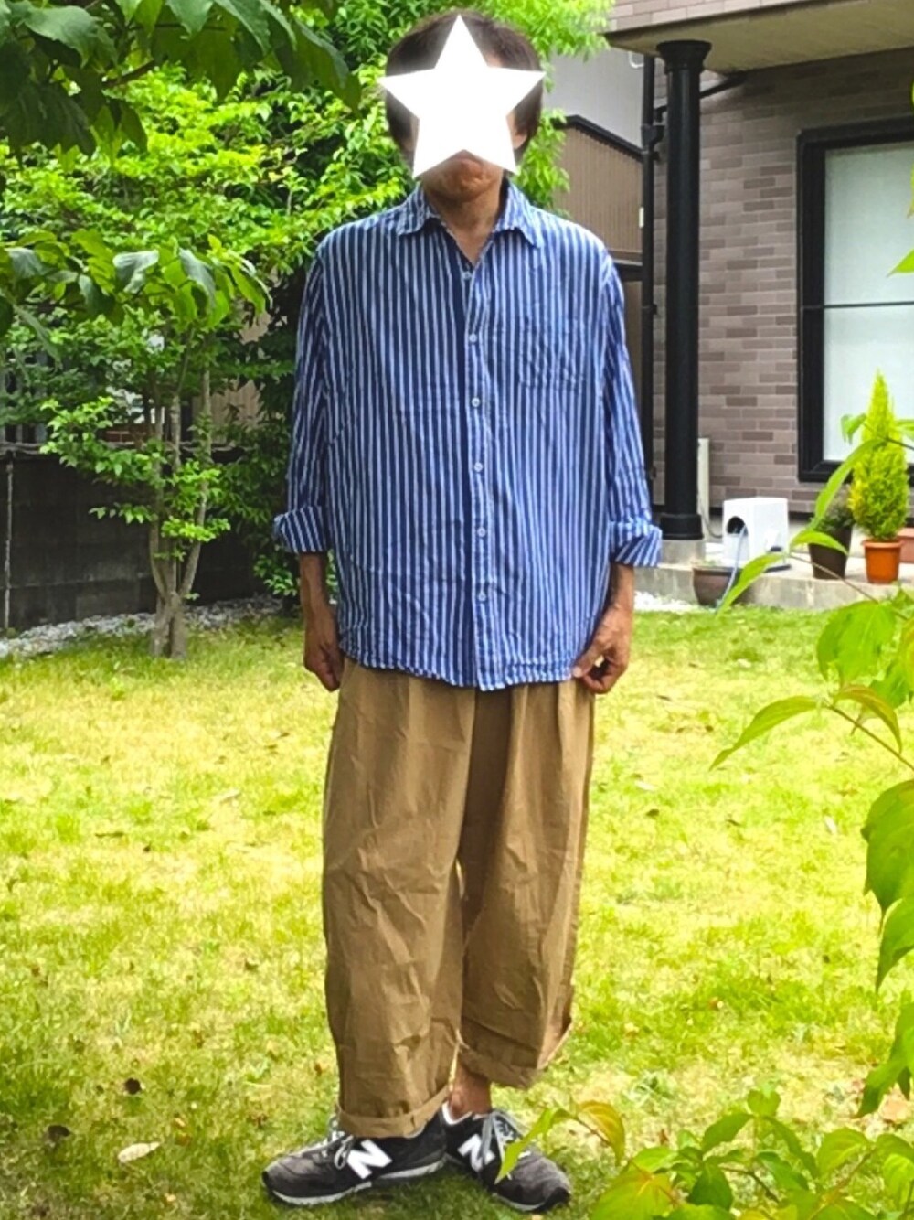 青とベージュのコーデは間違いないと勝手に思っている😄 上下ともオーバーサイズなのでシルエットが丸くなるように気をつけました。