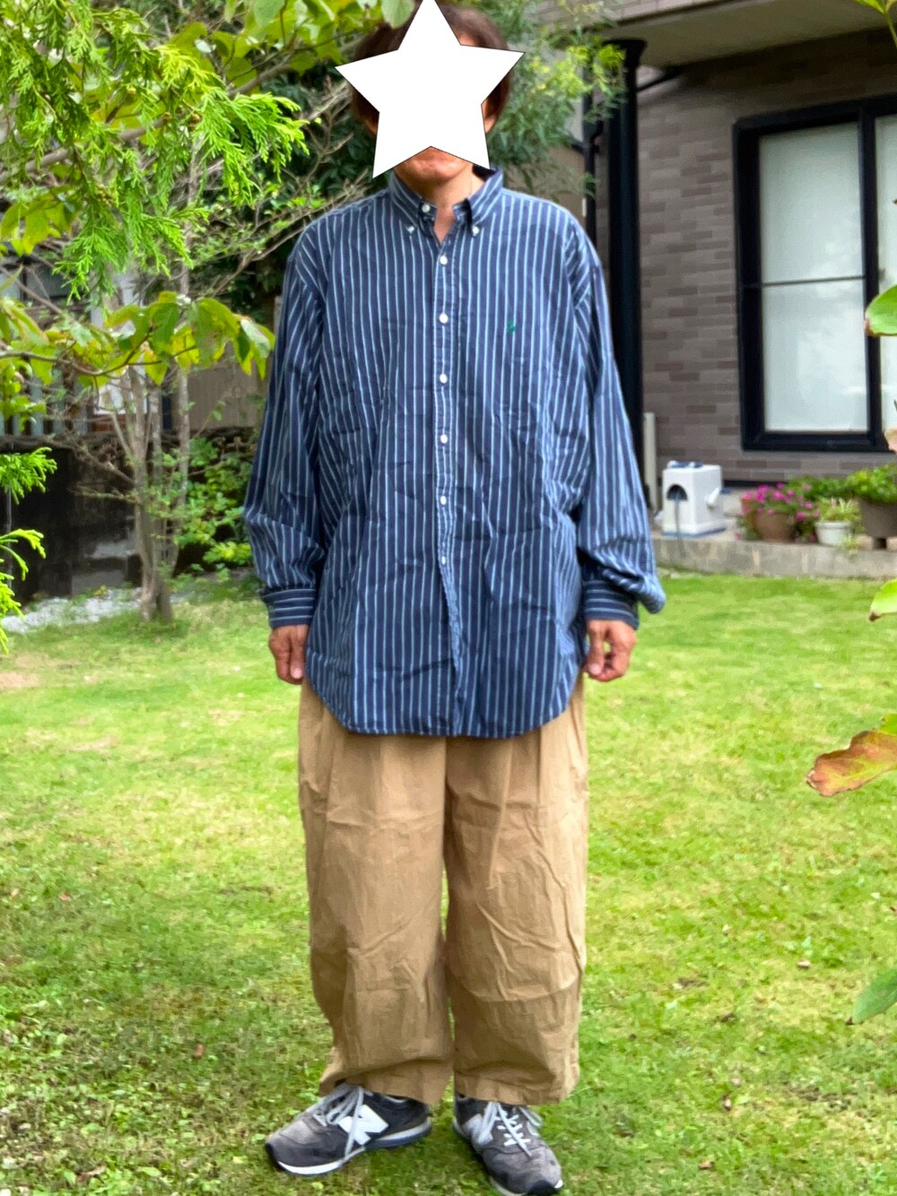 古着のラルフローレンシャツ。 アメリカサイズのXLなので、かなり大きいのですが、古着はこれくらいのサイズ感が好き。
