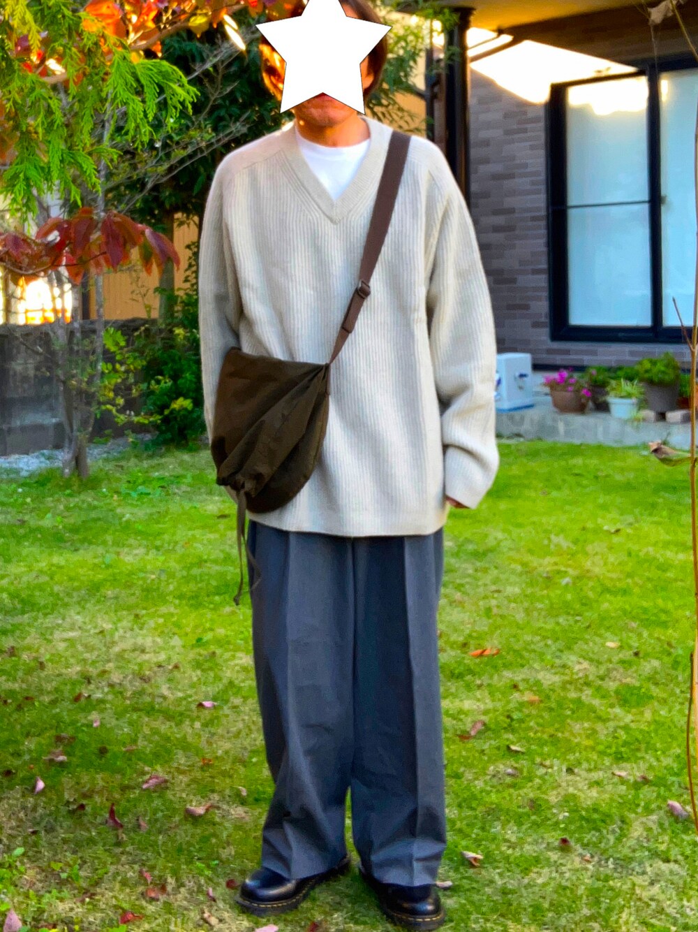 靴以外ユニクロコーデ。 差別化のため、ニットを3XL、パンツはレディースのもの。