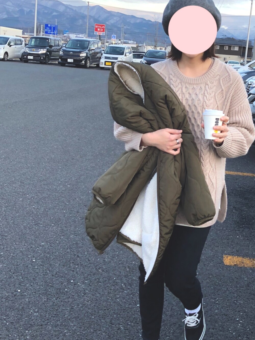 モコモコ×カーキ リバーシブルキルティングコート