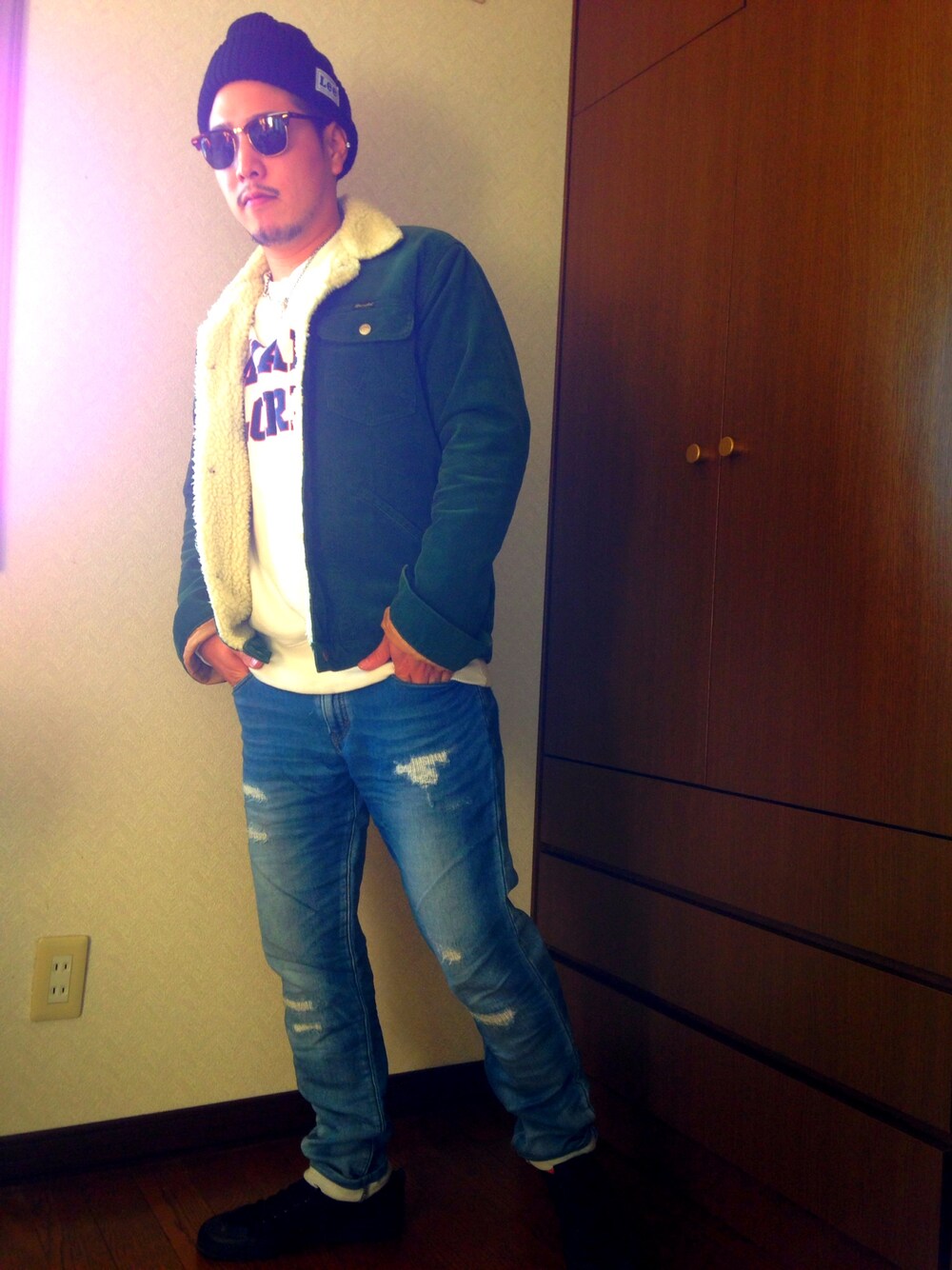 *atsushi*のニットキャップ/ビーニー「ピスネームニットワッチ/LEE/リー/フラッシュリポート/FLASHREPORT」を使ったコーディネート