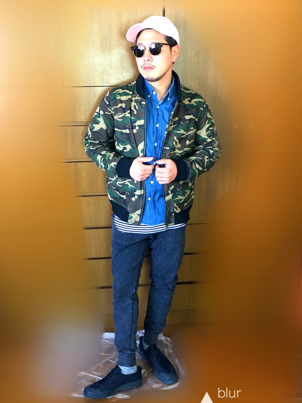 今日も天気がいいですねぇ〜 だいぶ暖かくなって過ごしやすくなってきた☆ 今日わ迷彩のMA-1タイプのブルゾンにデニムシャツを中に合わせてチョイ見せのボーダーって感じ😏 パンツわ最近スウェットパンツが楽で良く履いちゃいます‥ 帽子のピンクで春感を出してみましたぁ♪