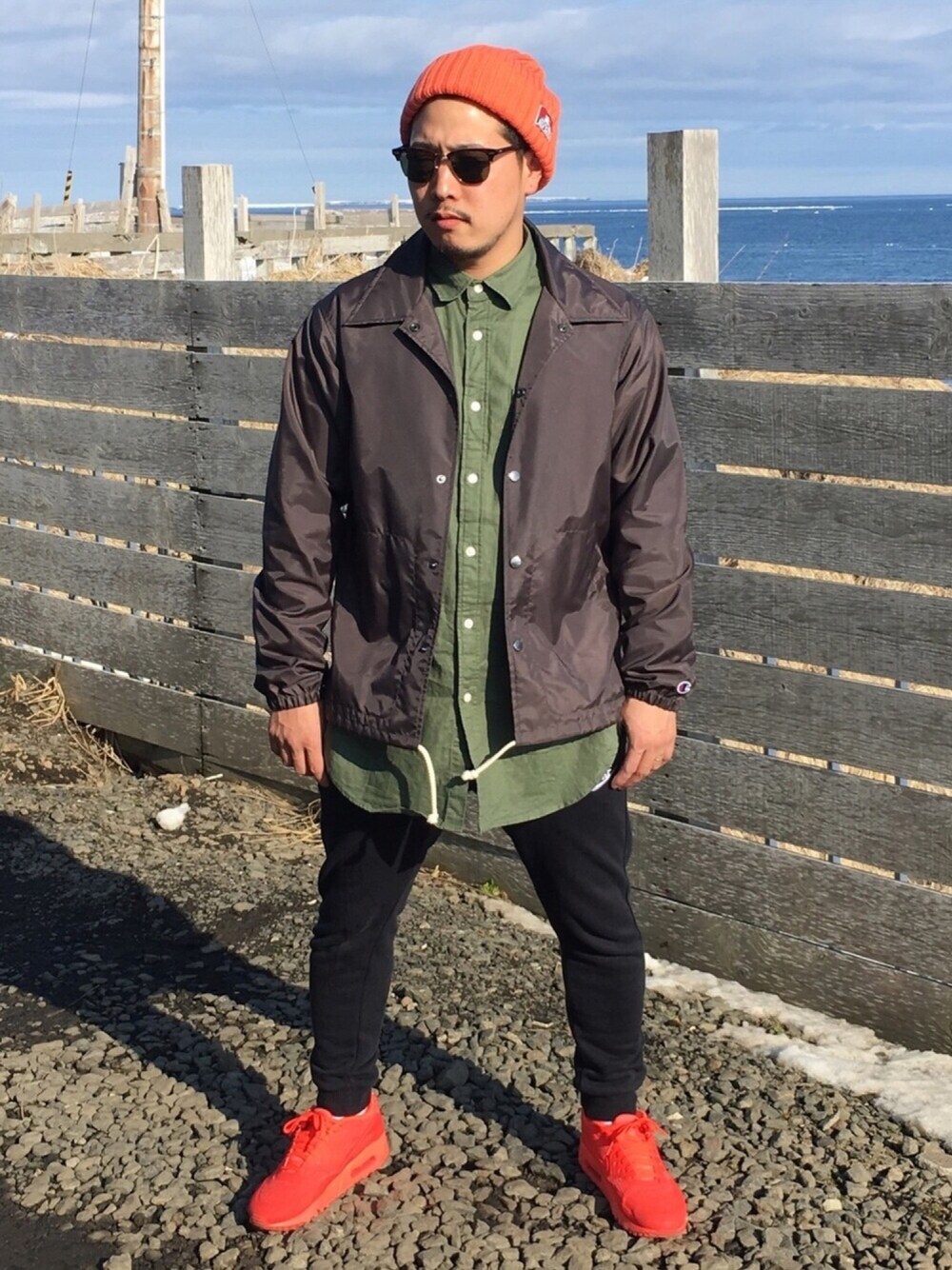 ナイキエアマックスデーだからナイキに媚びてます笑 コーチジャケットにカーキのロングシャツを合わせてみました〜😘 帽子と靴の色を合わせてちょい派手めにしてみた😎 なんかみかんみたいだけど‥笑 希望サイズわ26㎝です❤