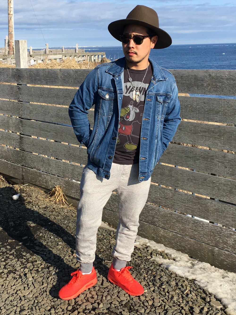 今日わジージャンにまたまたスウェットパンツでラフスタイルにしました^ ^ ジージャンわ結構なんでも合うんで使い勝手抜群ですよね〜‼️ インナーわビームスのTシャツ♪ いい感じにくすんだ黒っぽい色です😏 希望サイズわ26㎝です❤