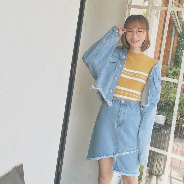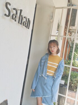 「goo goo eyesのアイテム(デニムスカート、ブルー系)」を使った、A涂A涂A涂さん(レディース)の春コーディネート