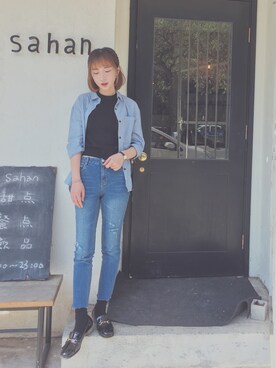 「goo goo eyesのアイテム(デニムパンツ、ブルー系)」を使った、A涂A涂A涂さん(レディース)の春コーディネート
