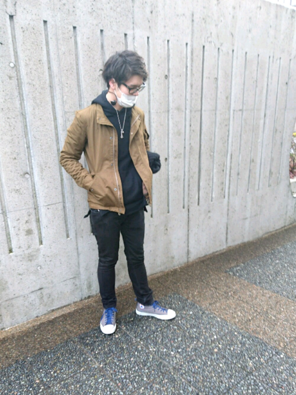 この前に着たモッズコートのフードをとってミリタリージャケットにしてパーカーinしました😆 MONKEY TIMEのパーカーはサイドにチャックが付いてるタイプで春になったら、レイヤードして着たいです(*´ω`*) 靴は珍しくコンバースのオールスターです❗
