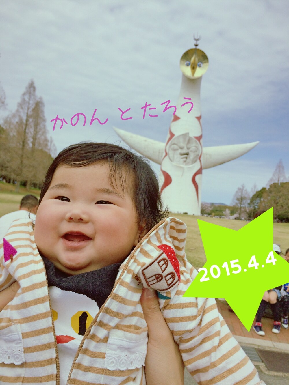 雨かなーと思ってたけど、思いがけない晴れ٩( ᐛ )و これぞ日頃の行い。 今年も、万博記念公園の花見に来れましたー! 去年はお腹の中やったね⑅◡̈* 初めて、太郎とツーショット٩(ˊᗜˋ*)و 毎年こようー!