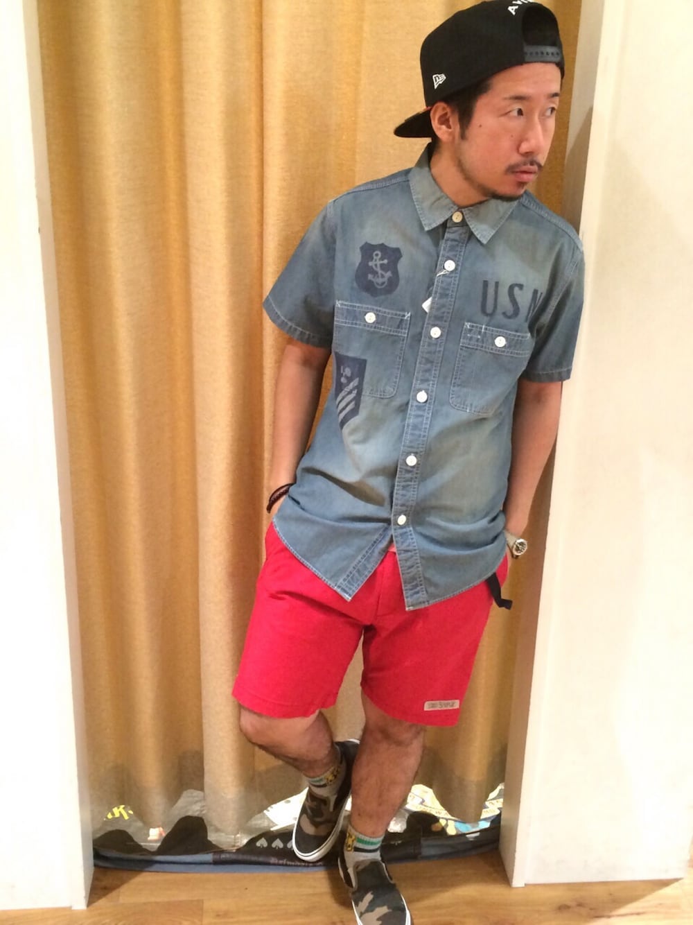 Kouki Niimiのシャツ/ブラウス「avirex/アヴィレックス/メンズ/TYPE BLUE S/S LASER PATCH FATIGUE SHIRT/タイプブルー 半袖 レーザーパッチ ファティーグ シャツ 【Lightning 2015年 08月号 掲載アイテム】」を使ったコーディネート