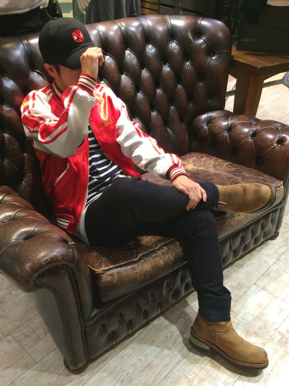 Kouki Niimiのスタジャン「avirex(アヴィレックス) TWO FACE SUKA JACKET/ 2フェイス スカジャケット/ スカジャン/ 」を使ったコーディネート