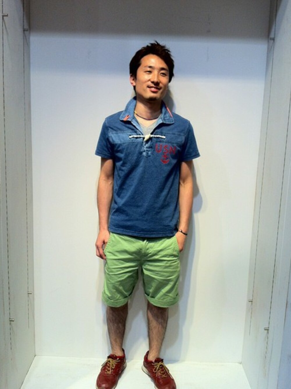Kunugiのポロシャツ「AVIREX (アヴィレックス) メンズ 半袖 デニム コンビ インディゴ ポロシャツ」を使ったコーディネート