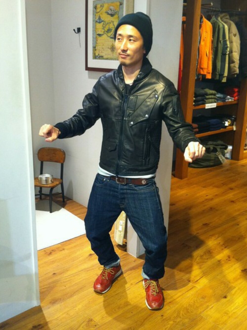 Kunugiのミリタリージャケット「AVIREX (アヴィレックス) メンズ P.D.W ファンクショナル レザージャケット」を使ったコーディネート