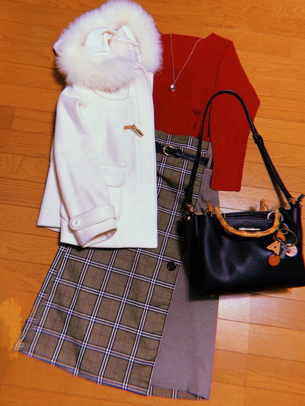 2018.12.24 * Xmas eve❤︎ サンタカラーにチェックスカートでクリスマス感を演出。 白コートでかわいらしさをプラスして♪ * 赤レンガ倉庫倉庫でイルミネーション★