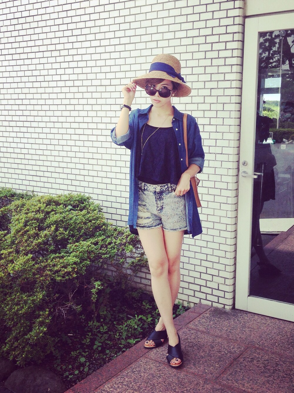 この前旅行に出かけたときのコーデ♡ 暑かったから、つば広のハット♡ これとってもお気に入りー( ´ ▽ ` )ノ 日焼けしないようにデニムシャツを羽織ったけど、結局脱いでましたねー(笑)