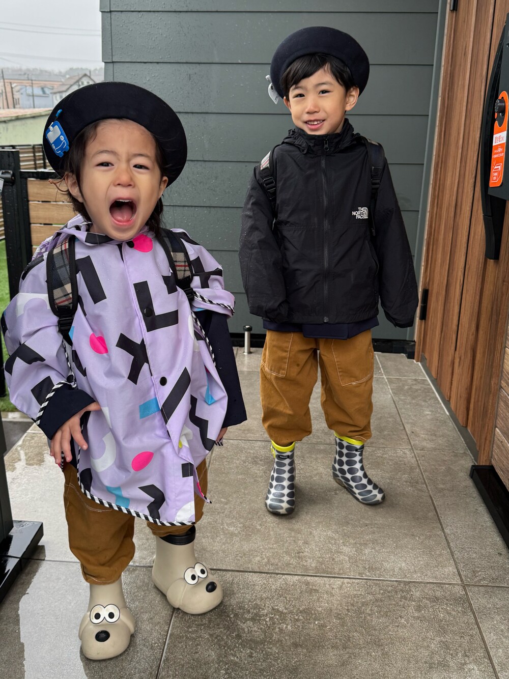 ▷▶︎ 雨の日の登園コーデ 昨日は雨の中ろくの初登園でした🚎✨