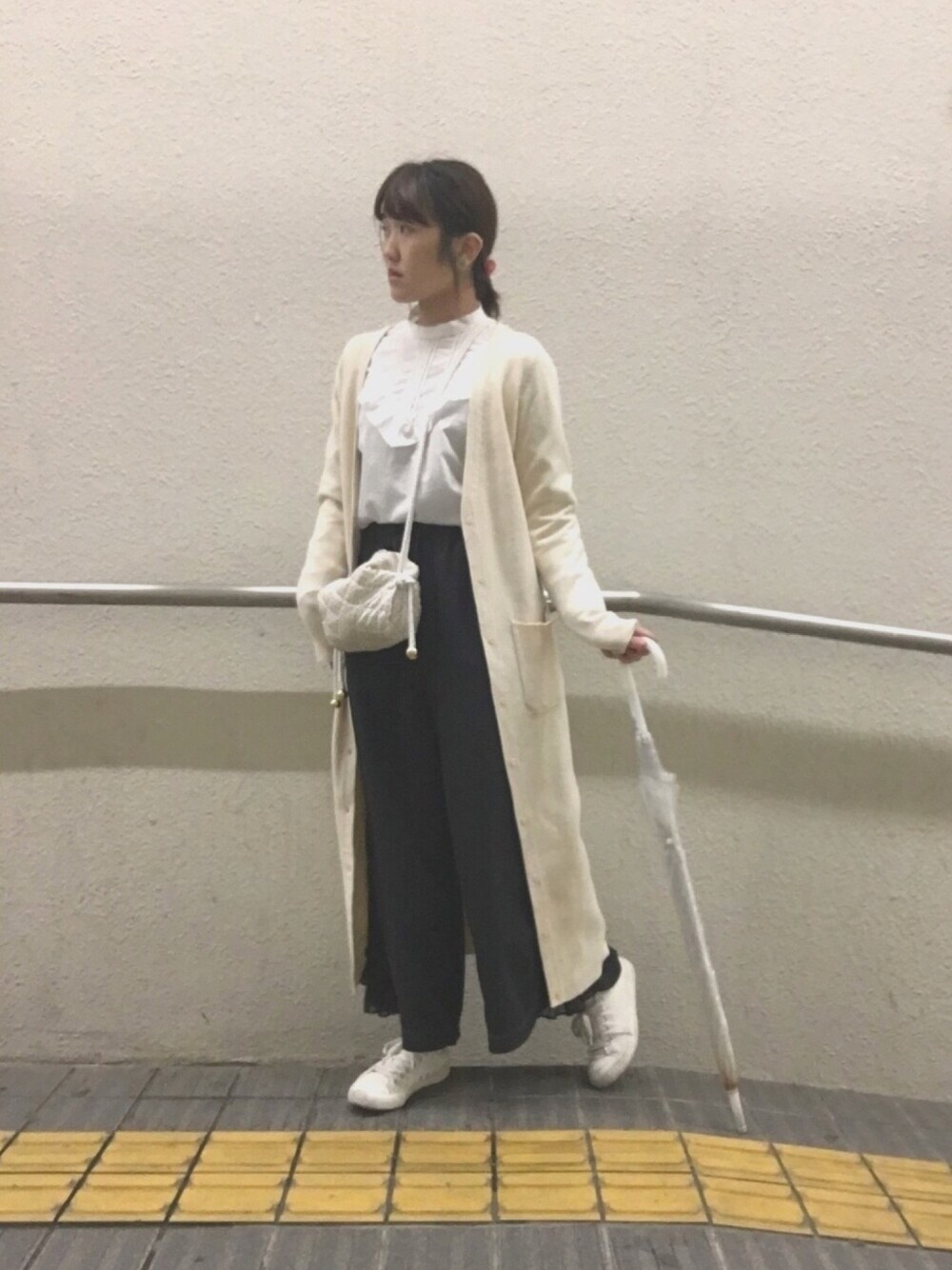 4/17 雨思ったより強くてロング丈ミスった感あったけど ちょうどいい感じに寒さしのげた このカーデもう3年くらい前のmerryさん! お気に入りの物は長く愛したいですね〜〜 Instagram@aumi_21