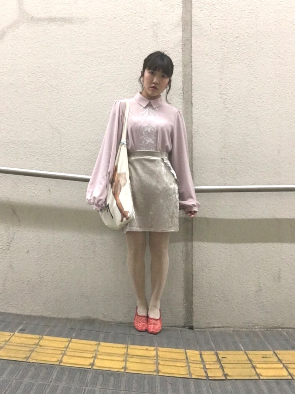 4/19 やっと着れたりぼん刺繍ブラウス🎀 このスカートとの組み合わせ めちゃくちゃかわいい〜〜!! 今日のコーデとてもお気に入り Instagram@aumi_21