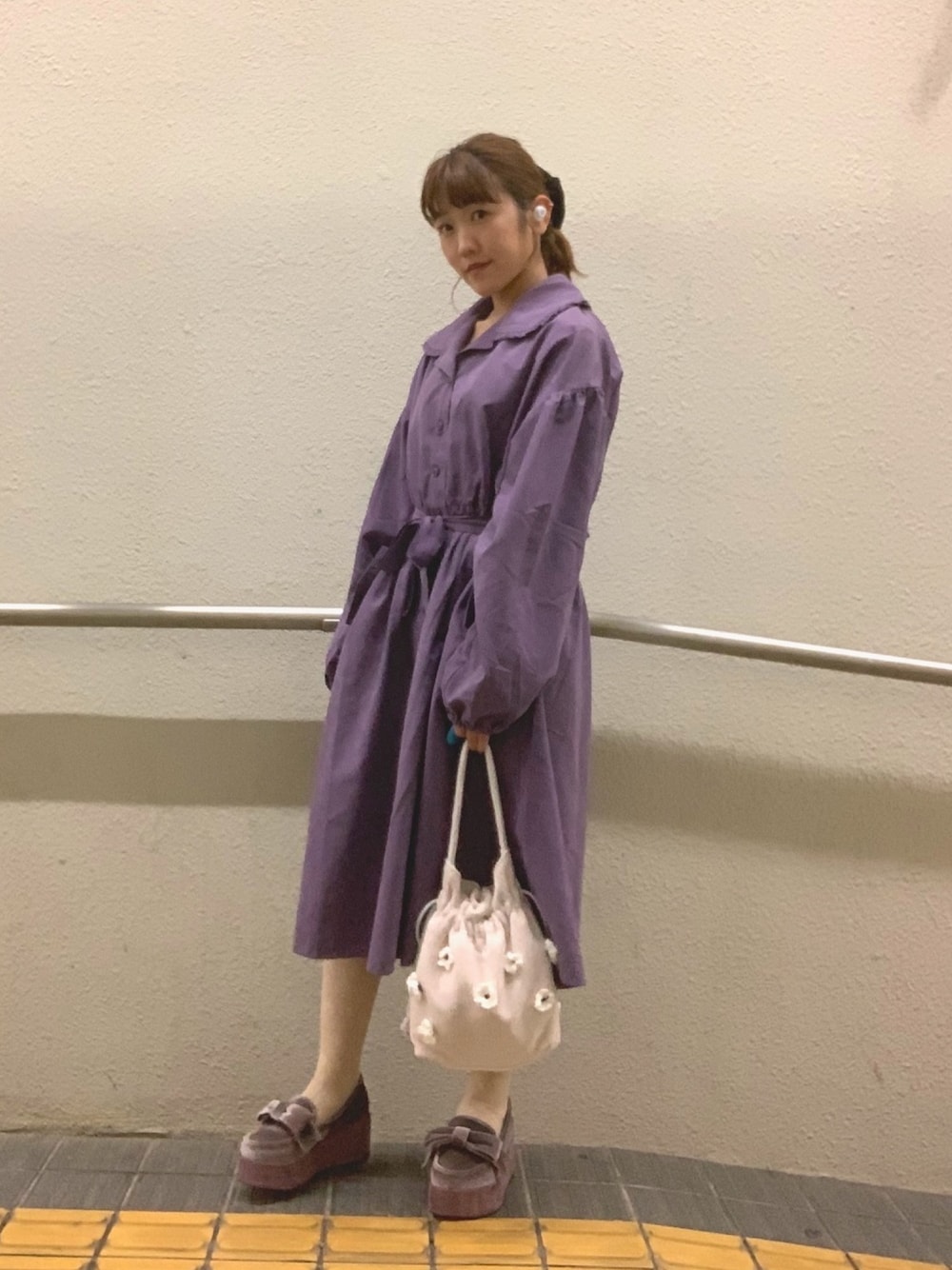 バックスタイルまでぬかりなく可愛い🍇 トレンチ初挑戦だけどワンピとしても 羽織としてもたくさん着たいなぁ 咲いたポシェットかわええ Instagram@aumi_21