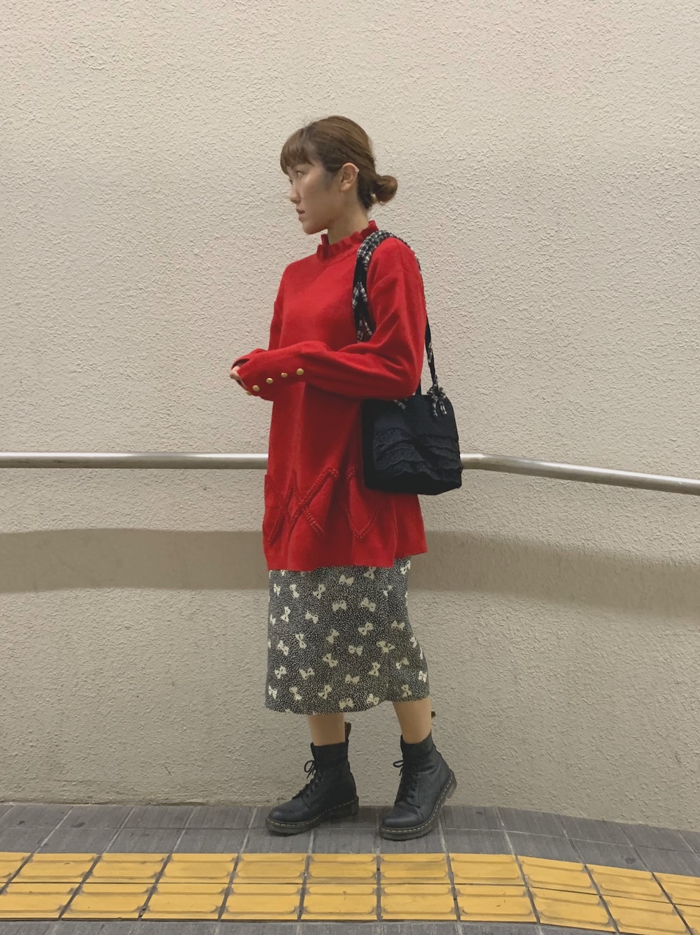 10/26 真っ赤なニット フリルになってるのめちゃんこかわいい ゆるずる Instagram@aumi_21