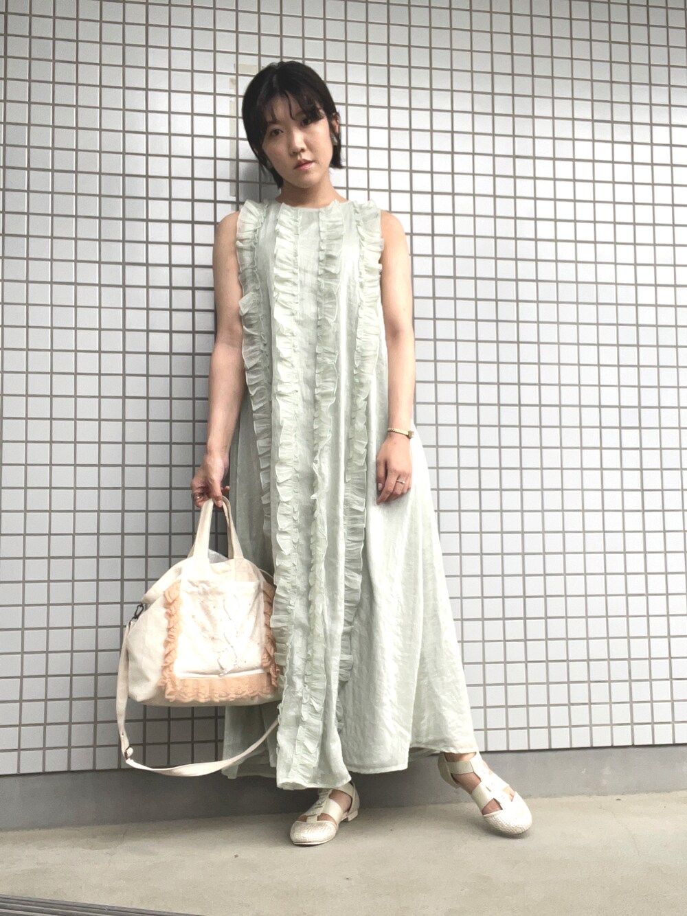 Ayumi Onishiのワンピース「airy frillロングワンピース」を使ったコーディネート
