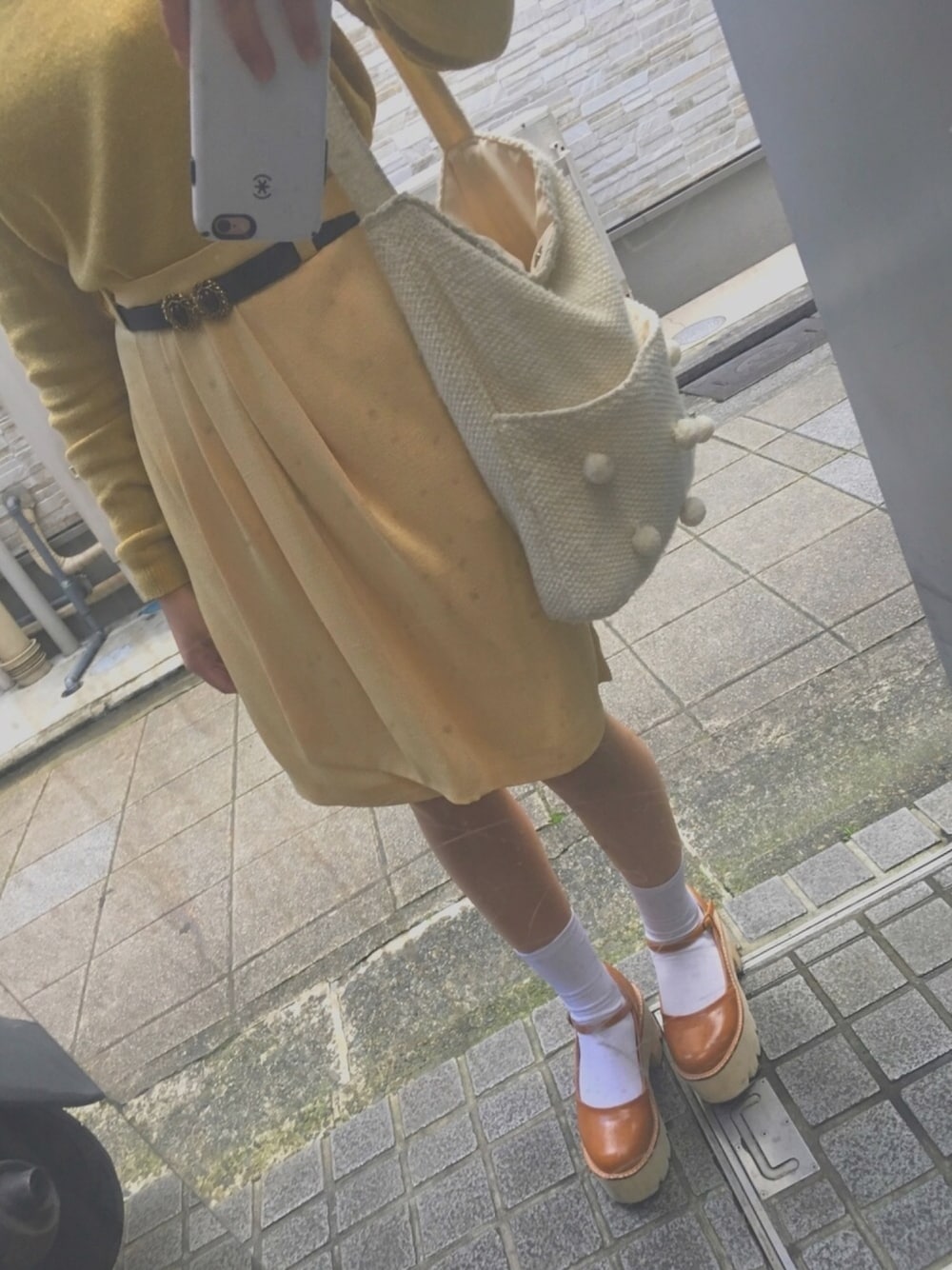 春〜〜🐝🌱 全身黄色!(笑) 普段着ない色を着るとテンション上がる🌼🌼 このラップスカート、風が吹くと ひらひら揺れて とても良い感じ ◎ ※スカートのシミでは無く 鏡の汚れです、、🤣 Instagram@aumi_21