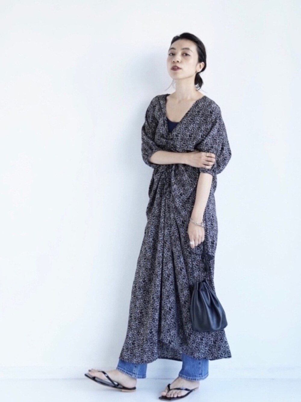 赤羽のワンピース「INTER FACTORY フラワープリントワンピース」を使ったコーディネート
