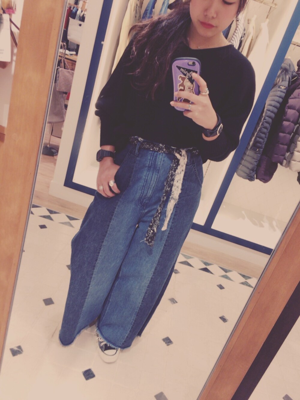 17ss Raybeamsオリジナルの 切り替えデニムワイドパンツ🤤💞 型違いでタイトスカートもあって、 私はワイドパンツをチョイスしました🙋🏻 これはヘビロテできそう🤔💭