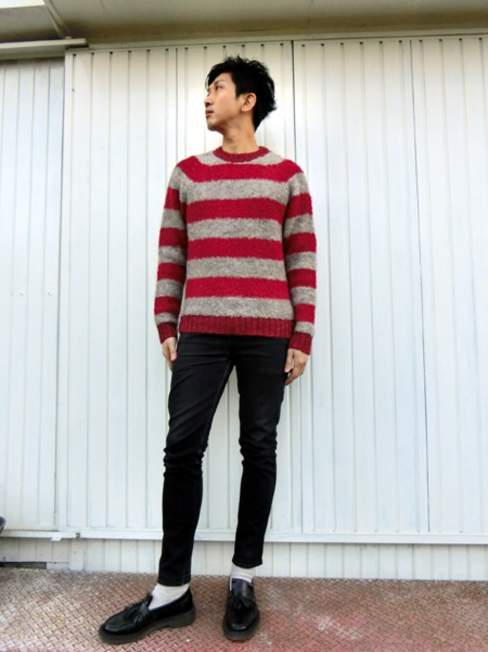 nobuのニット/セーター「Editors エディターズ アルパカ混ボーダークルーニット レッドボーダー」を使ったコーディネート