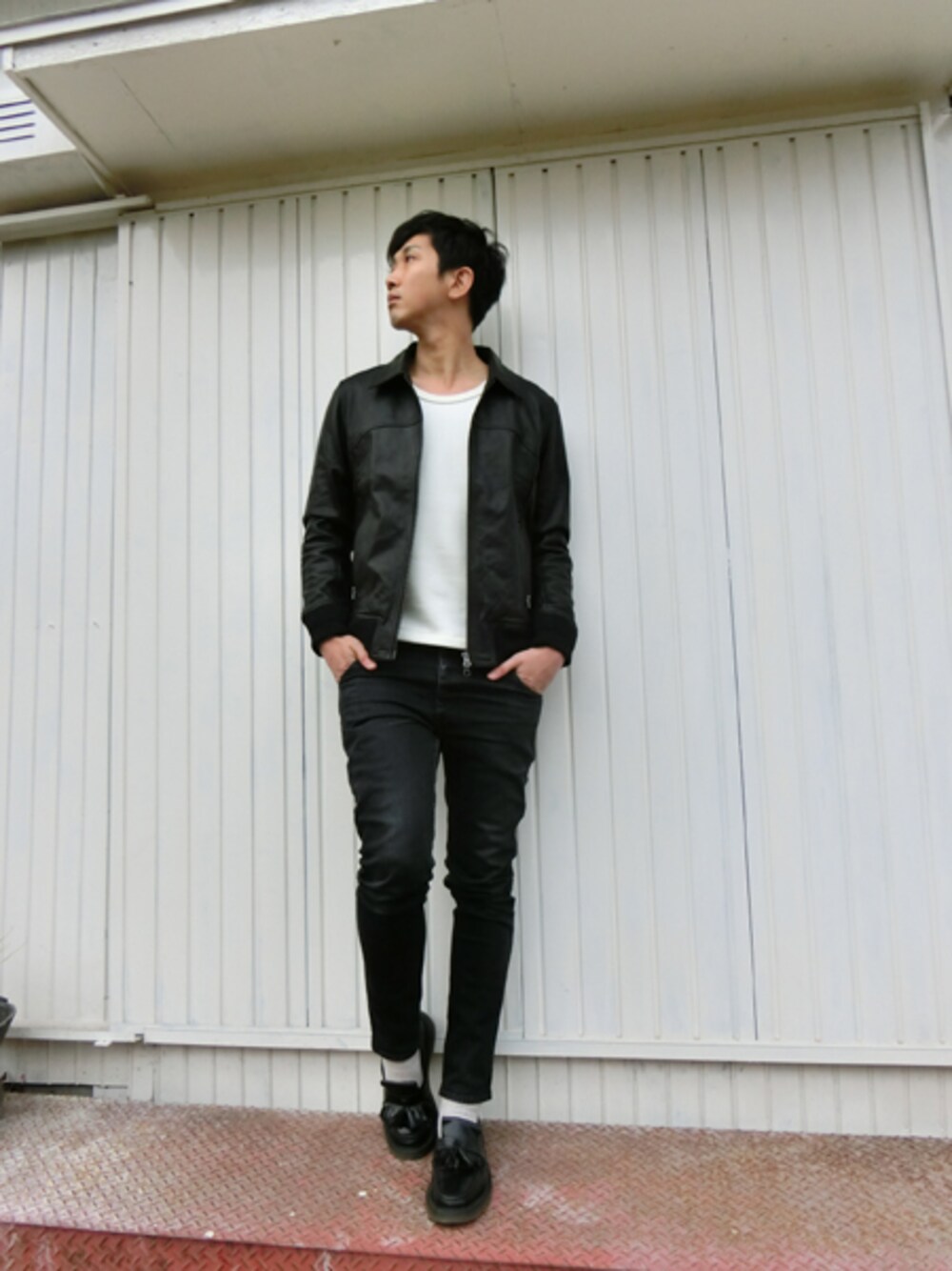nobuのライダースジャケット「Editors エディターズ ラムレザーブルゾン ブラック」を使ったコーディネート