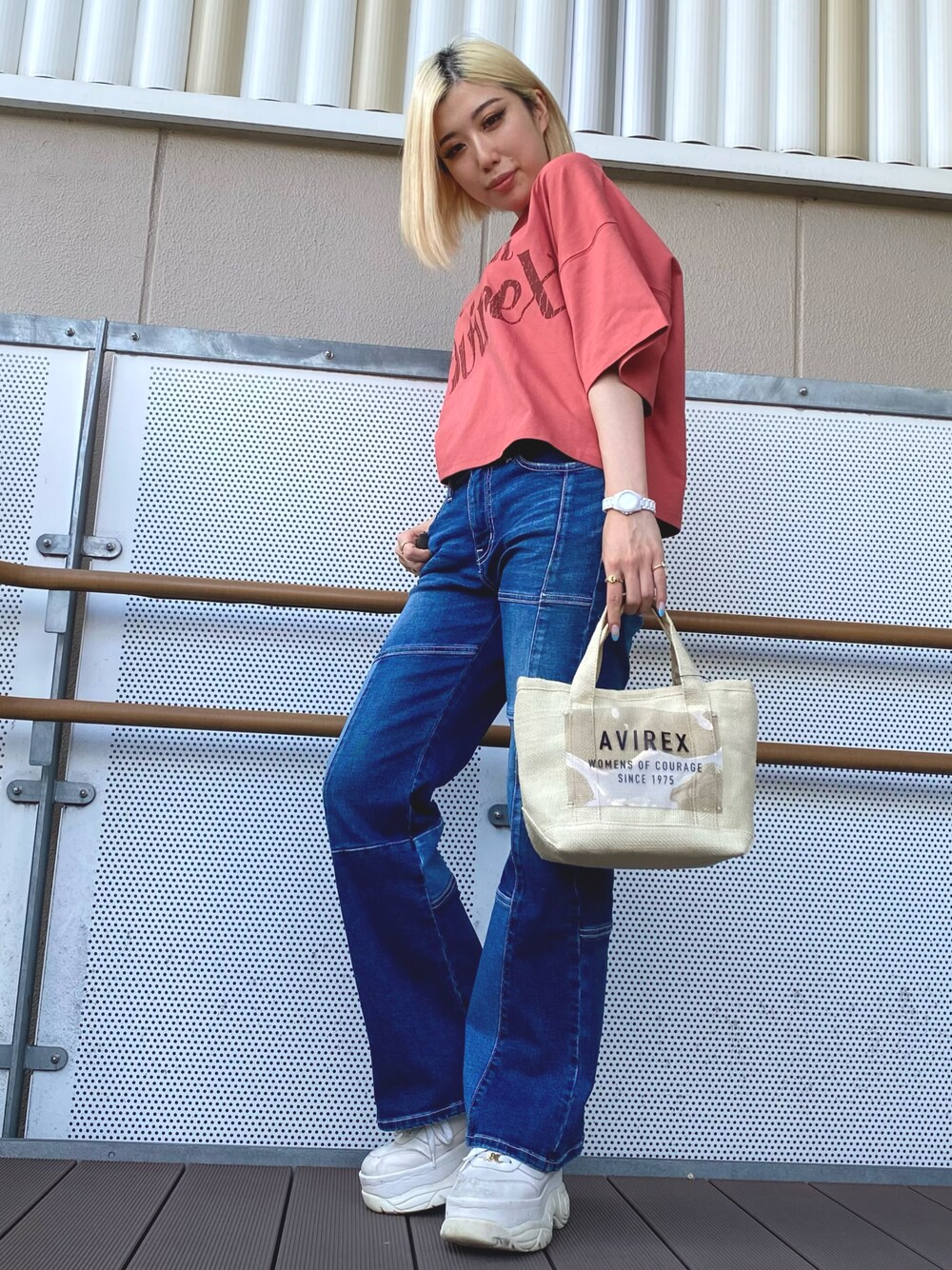 リメイク調のデニムはストレッチ抜群で 最高に楽ちんです♡! TEL: 048-657-8516 AVIREXコクーンシティ店STYLE