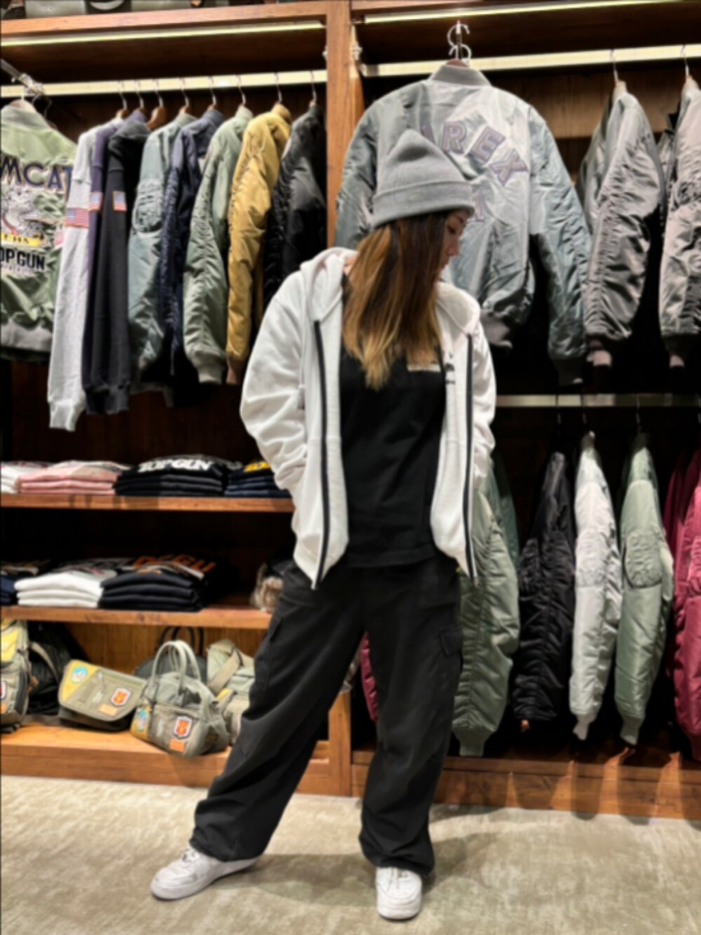 あい(AVIREX ららぽーと海老名店)のニットキャップ/ビーニー「LOGO WATCH CAP / ロゴ ワッチ キャップ / ビーニー / AVIREX / アヴィレックス」を使ったコーディネート