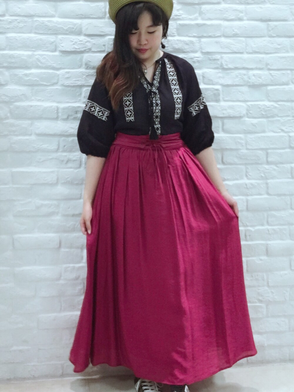 着回し力バツグンの刺繍ブラウス、ビビットなピンクと合わせたらとっても可愛いかったです💕