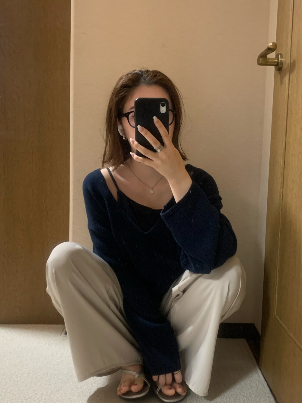 miwaのニット/セーター「深Vネックニットプルオーバー *●」を使ったコーディネート