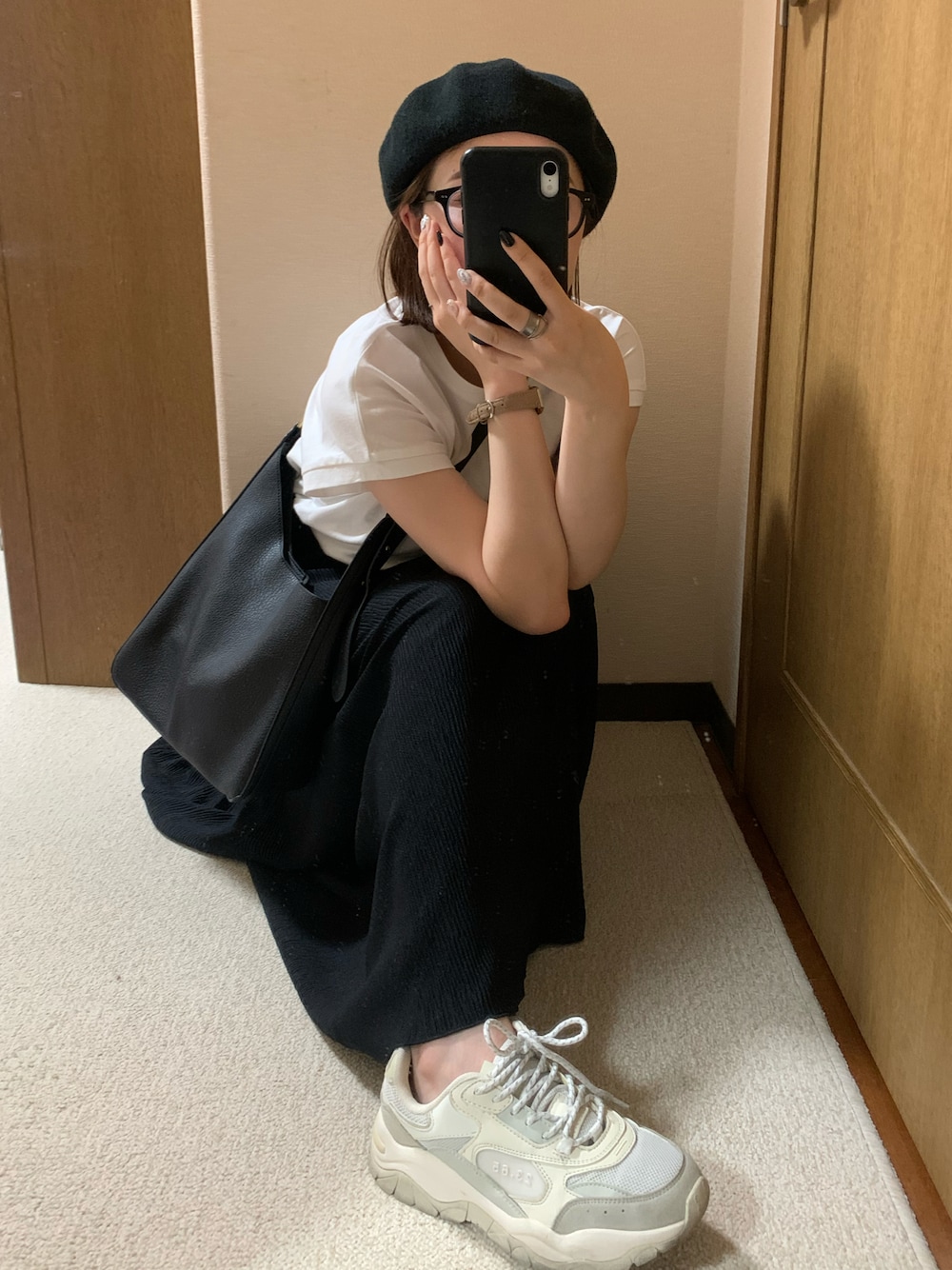 🖤モノトーンのゆるっとコーデ🖤 無地だけど小物で物足りない感をなくすコーデ なんといってもトップスとスカート合わせて3000円未満で完成するコーデ! コカって本当に安い。 結局はこんな安くて可愛くてシンプルなのが1番可愛いよなあ〜