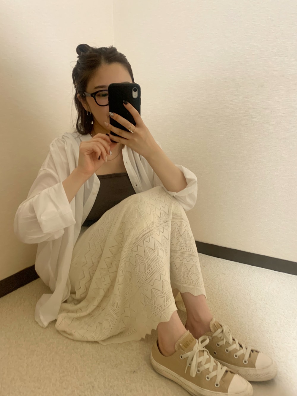 全身アメホリ🤍🤎 新作のレーススカートが可愛すぎるの🥺 模様と透け具合が夏にもってこい! 今回はブラウンとホワイトでカフェオレ服コーデにした!可愛い〜