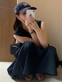 前後どっちでも着られる2wayワンピース! 生地もしっかりしてるし値段もプチプラすぎて優秀なの🥺🥺 二の腕の太い部分も隠してくれる! カラーも4色展開で私は合わせやすいネイビーを選んだよ🔵