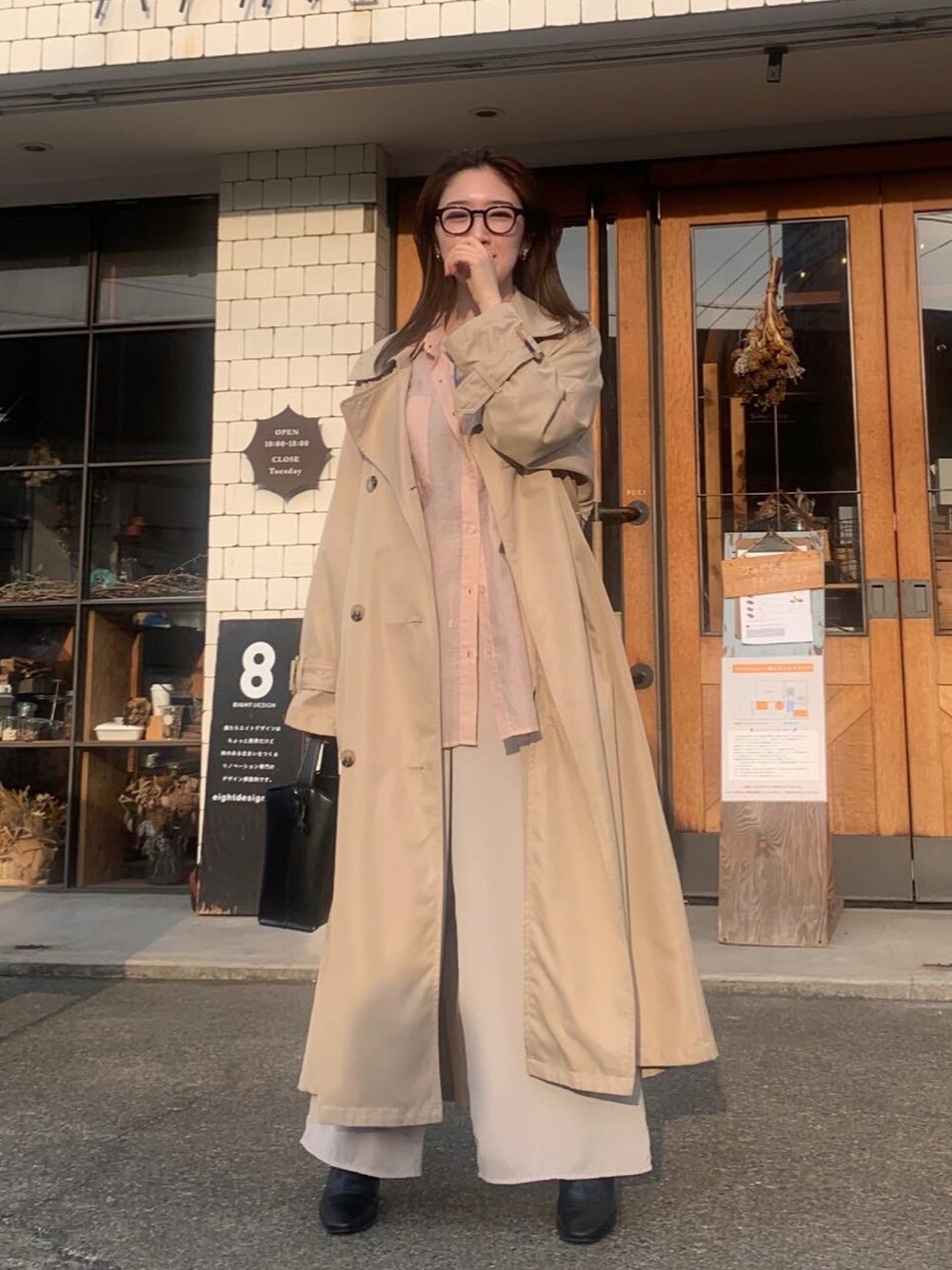 淡い春のトレンチコーデ🌸 淡色で合わせたトータルコーデ。 可愛らしさと大人っぽさが欲しくて雑貨は黒で締まる感じにした♡ 髪の毛はオイルをつけて決まりすぎず抜け感とツヤ感出して女性らしさを演出したよ〜!