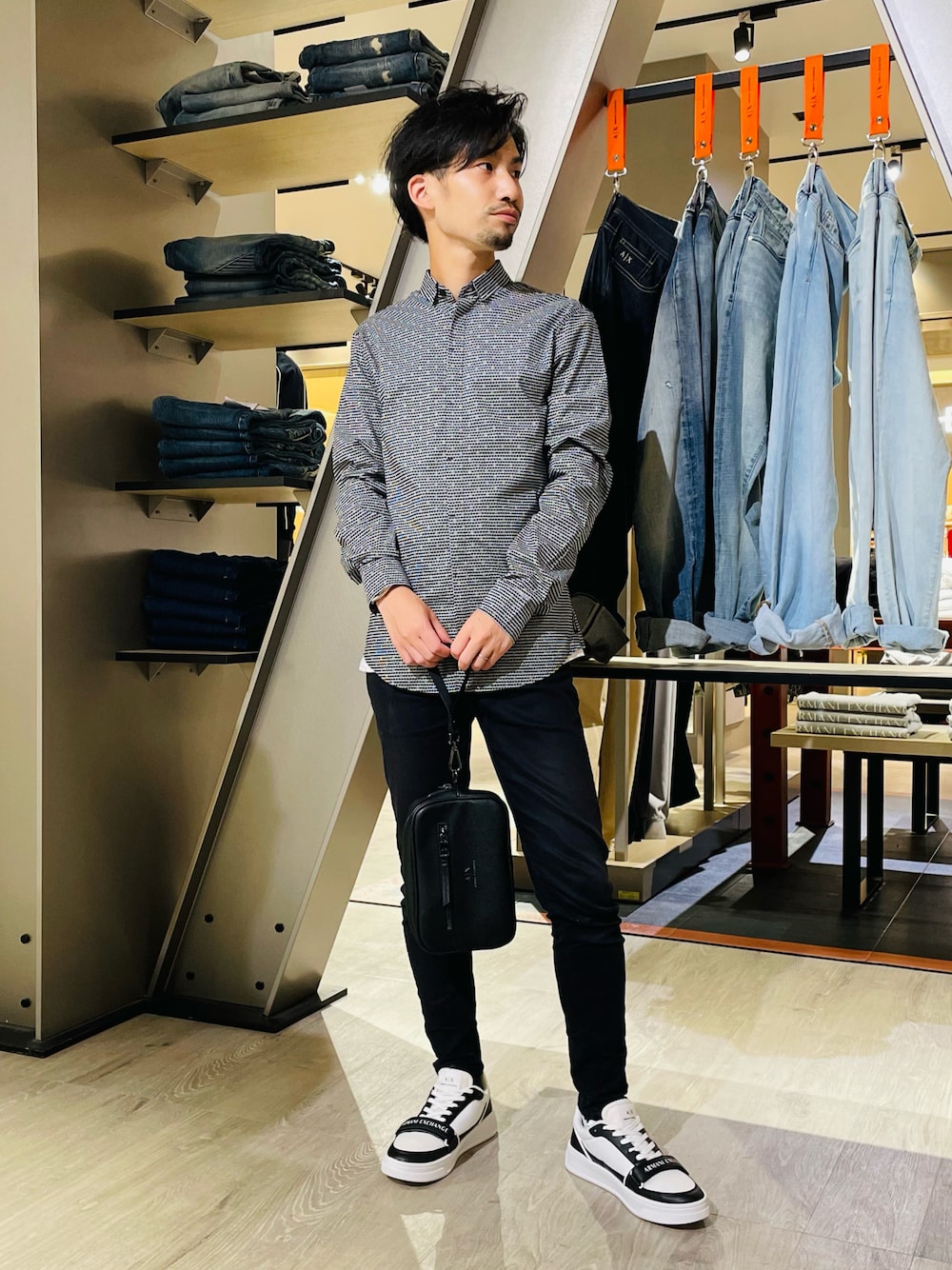 HANMA(A|X アルマーニ エクスチェンジ グランフロント 大阪店)のシャツ/ブラウス「【A|X アルマーニ エクスチェンジ】グラフィックロゴプリント 長袖シャツ/SLIM」を使ったコーディネート