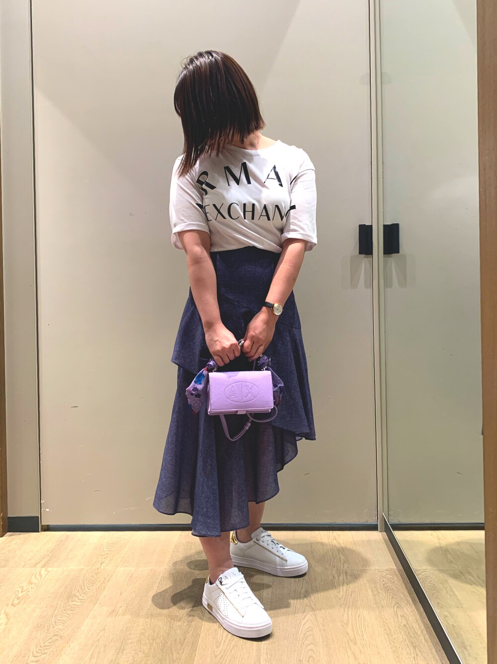 mama🐯(A|X アルマーニ エクスチェンジ ららぽーとEXPOCITY)のTシャツ/カットソー「【A|X アルマーニ エクスチェンジ】ロゴ 半袖クルーネックTシャツ/EASY TURN UP」を使ったコーディネート