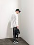 こんにちは😃 ご覧いただきありがとうございます! シャツとインナーを同じ柄で合わせた“柄on柄”コーデです。 モノトーンでまとめてスタイリッシュな印象に🏁 トップスに負けないバイカーデニムを合わせました。