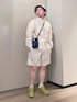 🦴🦴🦴🦴🦴 「おしゃれなアクティブコーデを教えて!」 アイボリー・ベージュのワントーンコーデ。 バケハにナイロンパーカーにショーツを合わせてフェスやアクティブシーンにおすすめのLOOKです🎶🎪🌞