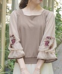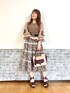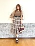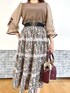 フェミニンエレガンスコーデ♡ レトロな雰囲気のラテカラーのワントーンコーデです。刺繍の色からピックしたワインカラーのインナーが秋の気配を感じるポイントに。