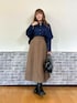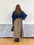 ケープ風のシルエットが印象的なジャカード生地のブラウスはサラッとした着心地で上品な雰囲気。 腰回りのタックがすらっと見えするハイウエストスカートと合わせてシックな大人スタイルに。