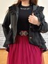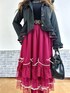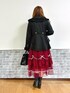 赤×黒のお出かけコーデです。フィッシュテールのジャケットは裾のドレープから裏地の赤がチラッと見えるのが可愛いです。バウンドコーデや参戦にもおすすめです。