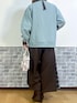 チョコミントカラーのカジュアルコーデです。 裏起毛で温かいトレーナーは肩が落としてあるので、長袖POももたつかず着られます。 春先まで長く着られるカラーなのも嬉しい♪