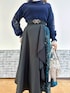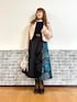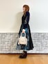 アステリズムシリーズにブルゾンを合わせたきれいめコーデです。刺繍の映えるネイビーのニットに抑えたカラーリングは上品な雰囲気。首元のビジューや星のボタンが煌めきノーアクセでも華やかです。